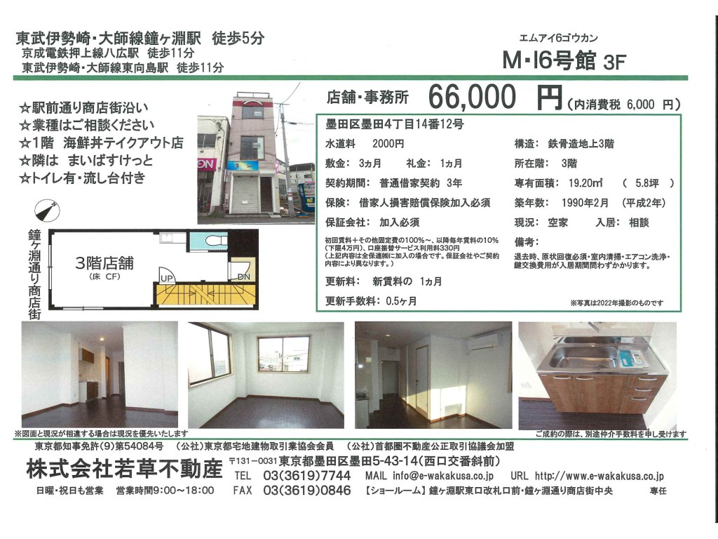 墨田区・東武伊勢崎線・鐘ヶ淵の賃貸アパート・マンション・駐車場情報の若草不動産